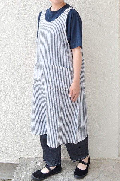 <商品品番>254605(塩縮ストライプジャンパースカートエプロン)