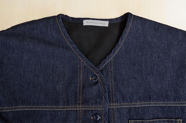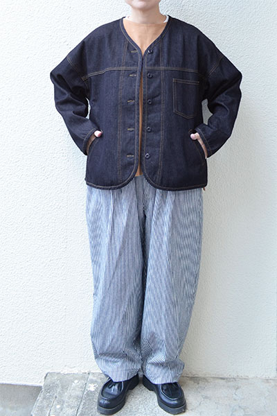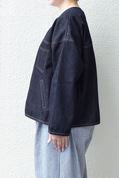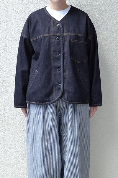 ”デニムボア ノーカラージャケット”