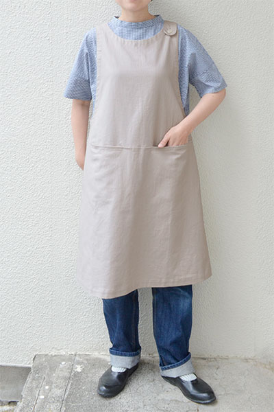 ”綿麻ムラ糸サージ オーバーエプロン”