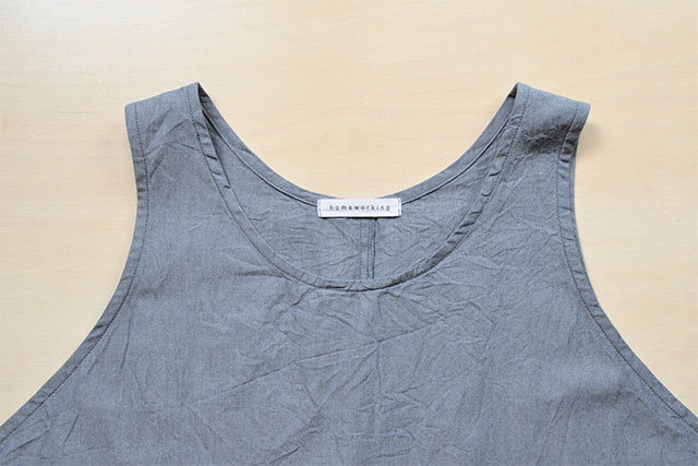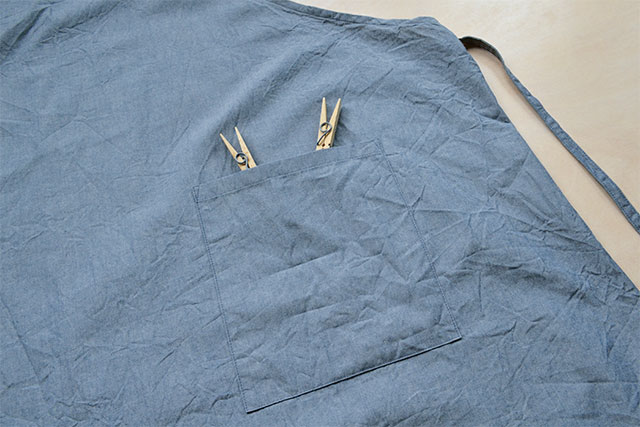 軽やかなコットンダンガリー素材の、ワンピースのようにさらりと着られるエプロンです。
