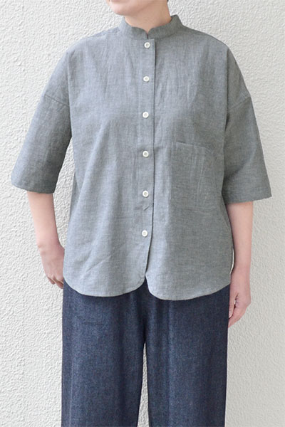 ダンガリーとあったので、硬めの生地かなと悩みながら購入しましたが、今夏には大正解でした。思ったより厚くもなく薄くもなく、きちんと感もあり、9月10月の暑さにも心地良く着用しました。ただ、アゴに襟が当たると硬さを感じ、洗濯を繰り返しても当たる感じは残り、一番上のボタンを外して着る事が多いです。良いシャツに出会えました。色はネイビーとありますが、グレーにも見えます。