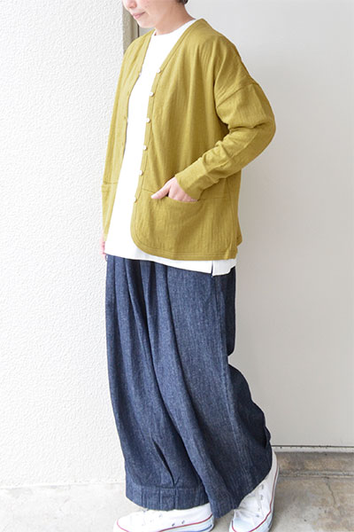画像ではキレイなイエローに見えたので、少し拍子抜けしましたが、秋に着るには、落ち着いていて、これもいいかな、と思っています。先に購入した、リネンレーヨンツイルジャンパースカートに合わせています。裾の長さもちょうど良く、生地がやわらかく、着心地いいです。