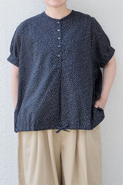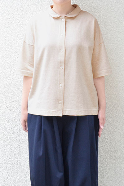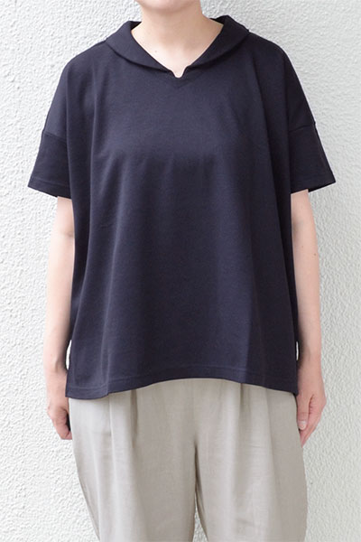 丸襟がとても可愛くて、一目惚れして購入しました。Tシャツよりもキチンとした感じがして、50代の私には出かけるときに着やすいかと思います。袖も少し長めで、二の腕が隠れるし、全体的にゆとりもあって、着やすかったです。ただ、染色していないということでしたが、一度、手洗いしたらすごい色が出て、びっくりしました。今後、どうなるかが気になります。