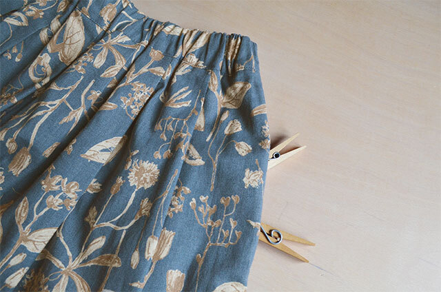ラフスケッチのようなタッチで草花が描かれた、薄手のリネンコットン生地でつくったスカートです。