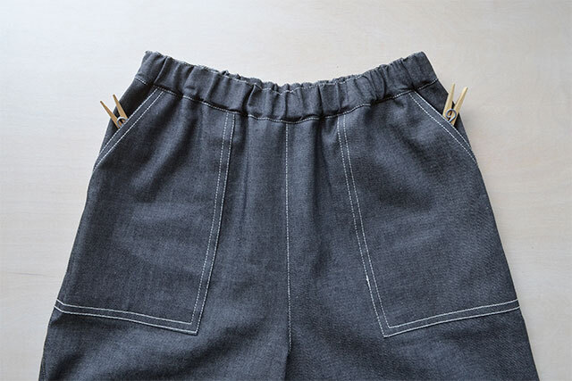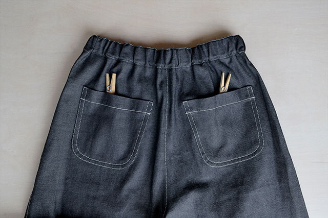 裾にダーツを入れてゆるやかに細くなるテーパードシルエットのパンツをつくりました。