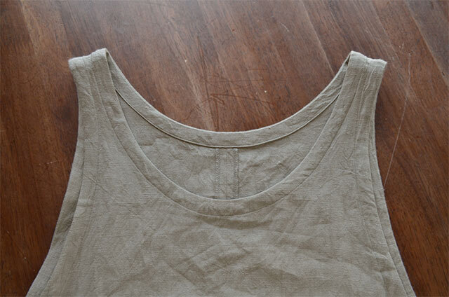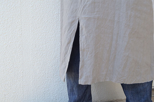 生地はフレンチリネンをもみ込みながら染色した、